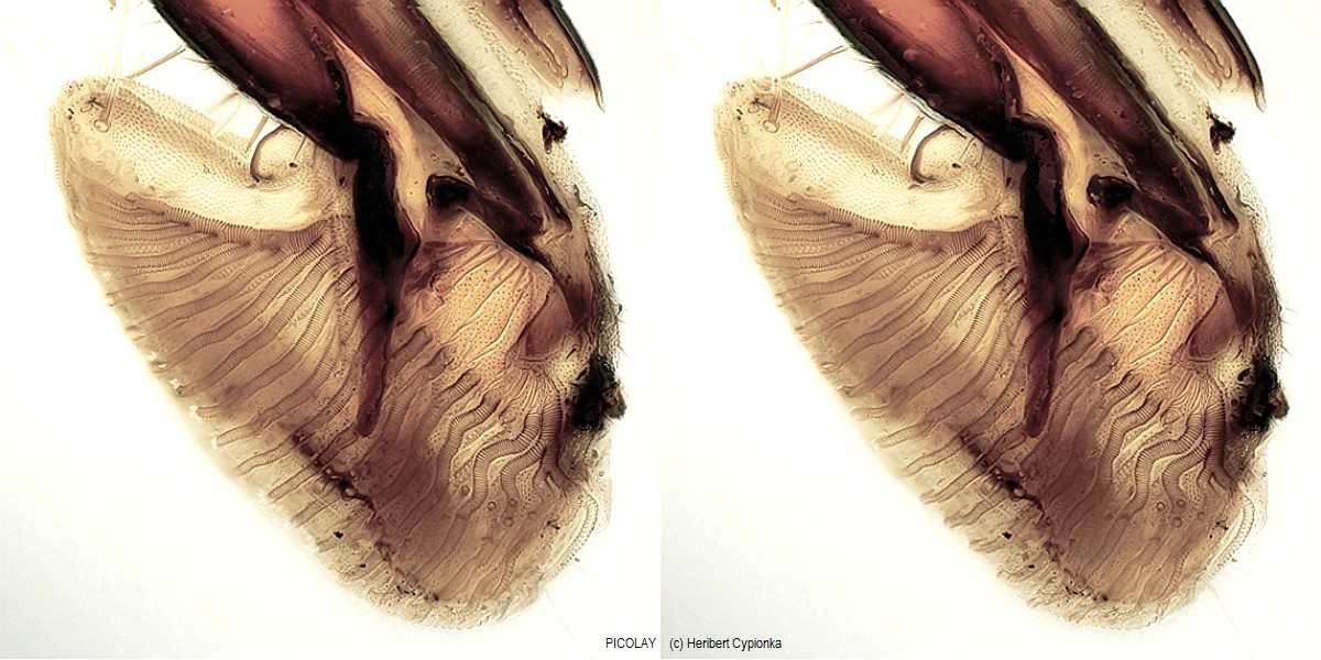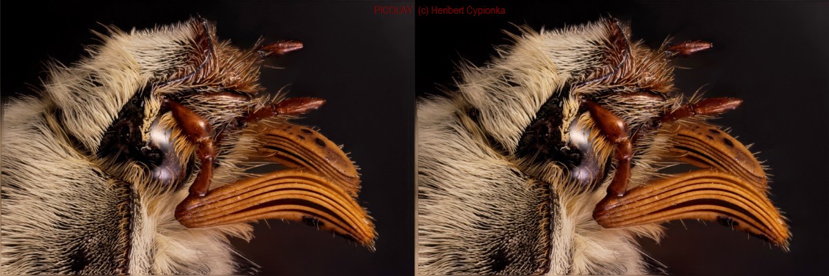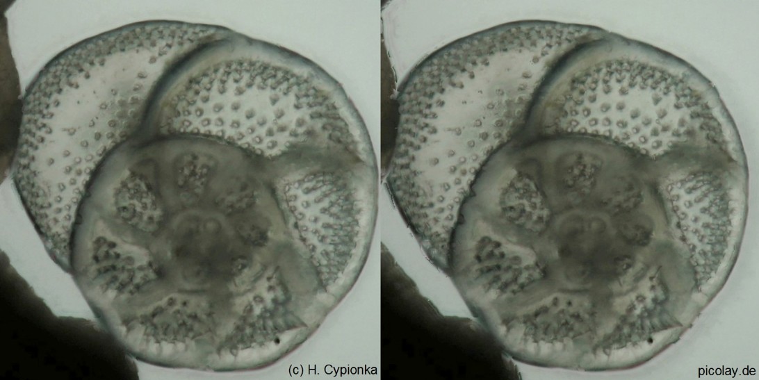< PICOLAY Galleries Gallery: Stereos for crossed and parallel eyes (All image processing done with PICOLAY, exclusively) How to ... Poppy seeds Poppy seed Fly (proboscis) Fly (proboscis) Fly May bug Caraway Algal colony Saturnalis circularis Foraminifer Foraminifer Foraminifer Foraminifer Formainifer Hoverfly Earwig < PICOLAY Galleries